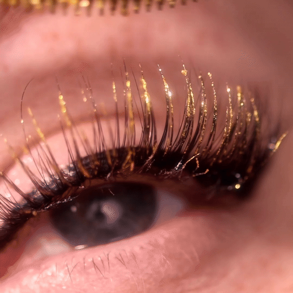 Appliquez notre mascara pailleté sur vos cils, de la racine à la pointe